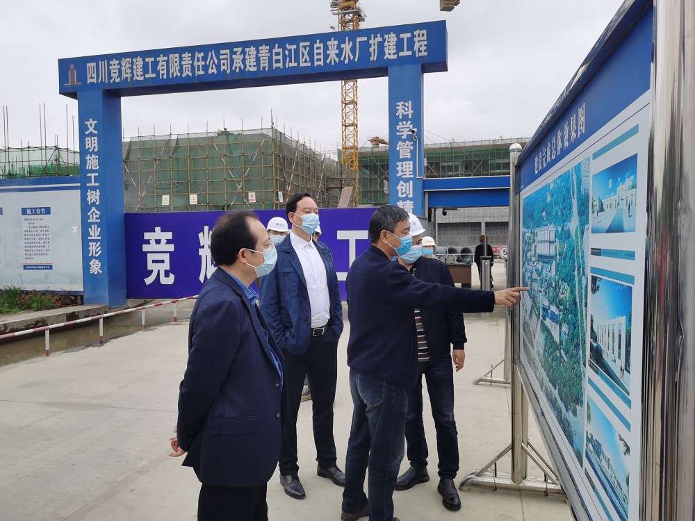 鐘杰董事長一行首先前往成都青白江水業(yè)股份有限公司,先后視察了該公司20T自來水廠擴(kuò)建項(xiàng)目工地和現(xiàn)有自來水生產(chǎn)線,詳細(xì)詢問了工程規(guī)模、建設(shè)進(jìn)度、質(zhì)量控制、安全生產(chǎn)等情況,聽取了成都青白江水業(yè)股份有限公司經(jīng)營班子工作匯報(bào)。