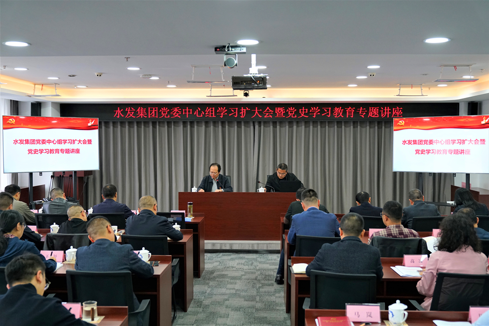 為進一步掀起集團黨員干部學(xué)習(xí)黨史的熱潮,4月9日下午,四川省水利發(fā)展集團有限公司黨委召開理論學(xué)習(xí)中心組學(xué)習(xí)(擴大)會暨黨史學(xué)習(xí)教育專題講座,特邀四川省委省直機關(guān)黨??蒲刑幐碧庨L宋鍵作《學(xué)黨史,憶初心,擔(dān)使命--中國共產(chǎn)黨的百年光輝歷程與啟示》專題輔導(dǎo)講座。集團黨委書記、董事長鐘杰主持會議。
