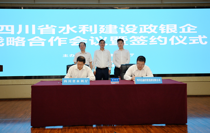 四川省水利廳黨組書(shū)記、廳長(zhǎng)郭亨孝,農(nóng)發(fā)行四川省分行黨委書(shū)記、行長(zhǎng)董明,農(nóng)行四川省分行黨委書(shū)記、行長(zhǎng)溫學(xué)宇,金控集團(tuán)黨委書(shū)記、董事長(zhǎng)徐一心,四川銀行黨委書(shū)記、行長(zhǎng)林罡分別在簽約儀式上致辭。四川省水利廳黨組成員、副廳長(zhǎng)張強(qiáng)言代表水利廳和四大金融機(jī)構(gòu)相關(guān)負(fù)責(zé)人簽署戰(zhàn)略合作協(xié)議。水利廳黨組成員、副廳長(zhǎng)李勇藺主持簽約儀式。