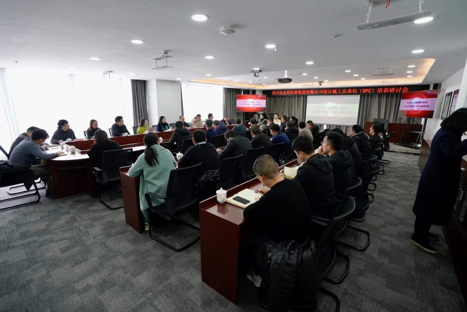 為積極探索項目建設(shè)管理模式,提升集團牽頭實施的跨市(州)重大水利工程項目建設(shè)管理水平,2022年2月11日,水發(fā)集團組織召開了水利建設(shè)工程施工總承包(EPC)專題培訓研討會。會議邀請了龍?zhí)了畮旃靖笨偨?jīng)理陳正勛、EPC總承包部總工馮書洋兩位專家授課。會議由集團質(zhì)量安全環(huán)保部副部長朱坤主持,集團副總經(jīng)理隆文非參加會議并做總結(jié)。
