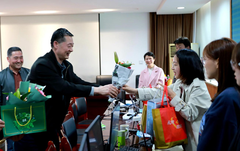 陽(yáng)春三月,繁花似錦。設(shè)計(jì)院公司引大濟(jì)岷項(xiàng)目組集中設(shè)計(jì)辦公室卻是一派繁忙,無(wú)人賞花。確切的講,從正月初三起,這個(gè)團(tuán)隊(duì)就已經(jīng)開始新年奮蹄疾、全力赴征程的戰(zhàn)斗。她們秉承著“金牛玉虎闖機(jī)遇,引大濟(jì)岷續(xù)偉業(yè)”的鏗鏘誓言,靠著“996”“白加黑”的非常規(guī)工作模式,攻克了我省最復(fù)雜都江堰供水區(qū)水資源配置問題,保障了引大濟(jì)岷可研進(jìn)度,用青春繪就了一張張水網(wǎng)藍(lán)圖。馬勇仕一行向節(jié)日仍?shī)^戰(zhàn)在一線的女職工們獻(xiàn)上鮮花,送上慰問品,并對(duì)項(xiàng)目組取得的成績(jī)表示祝賀。在得知設(shè)計(jì)團(tuán)隊(duì)平均年齡34歲,且女職工占比近70%后,馬勇仕表示:這樣的團(tuán)隊(duì)讓我們感到新時(shí)代女性建功立業(yè)的決心,更讓我們看到四川水利的希望,這是巾幗建功新時(shí)代的真實(shí)寫照;鼓勵(lì)全體女職工要敢于做追夢(mèng)的奮斗者,再接再厲、再創(chuàng)佳績(jī),以堅(jiān)定的責(zé)任感和使命感,全力推動(dòng)引大濟(jì)岷這一國(guó)家和四川水網(wǎng)體系的骨干工程早日開工建設(shè)。