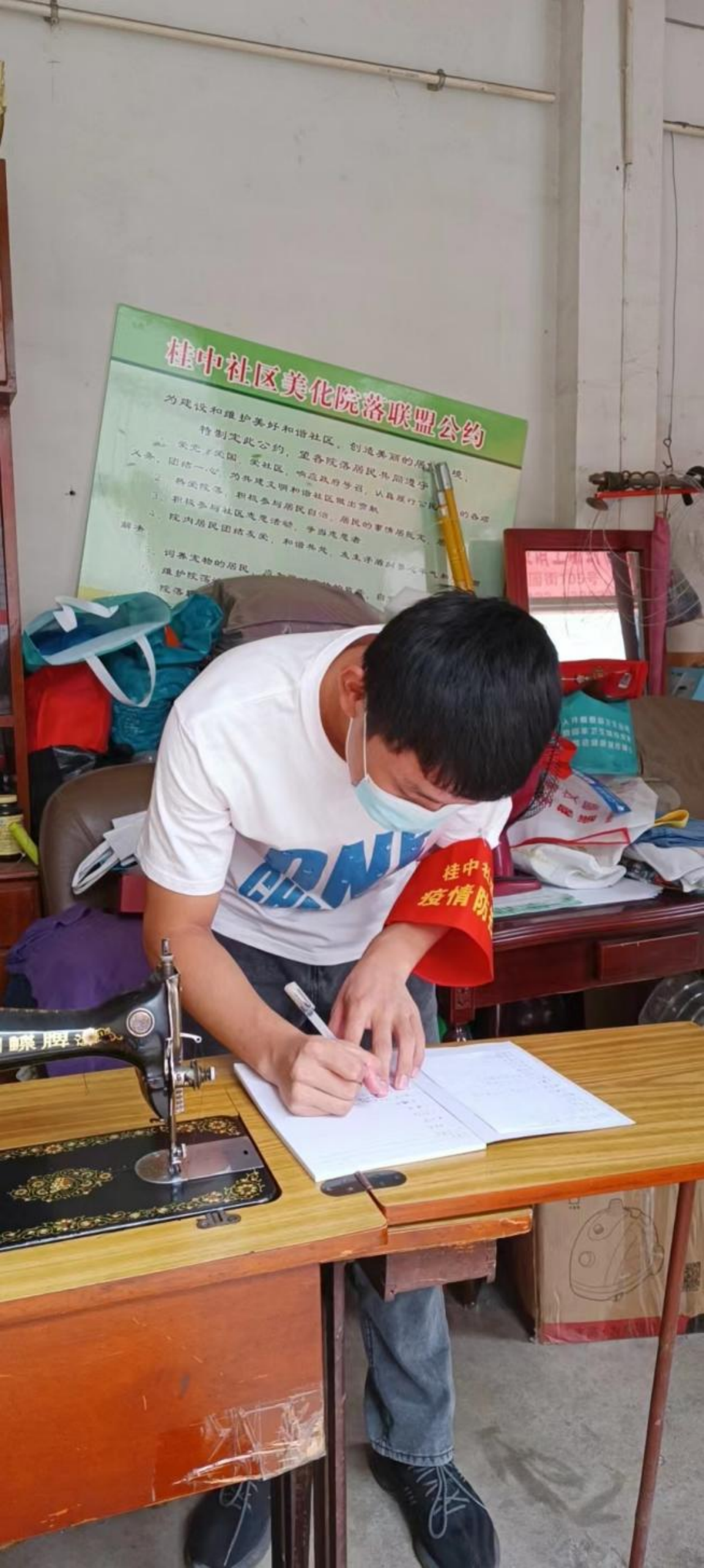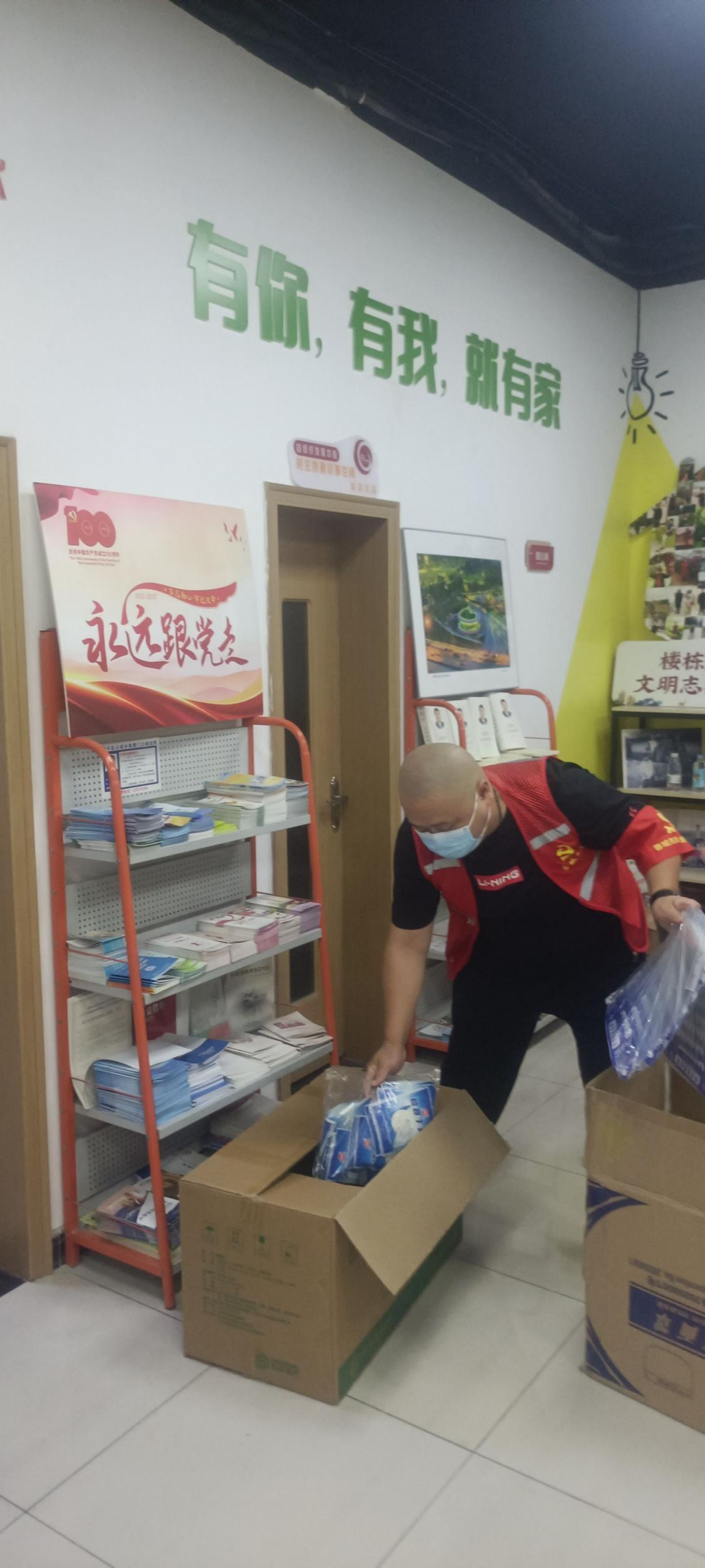 后勤服務(wù)部葉世偉正在整理防疫物資