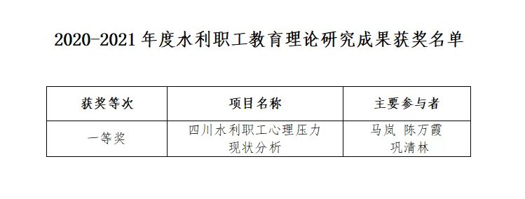 10月26日,中國水利教育協(xié)會(huì)在官網(wǎng)發(fā)布了第二屆水利職工創(chuàng)新成果評(píng)選結(jié)果和2020-2021年度全國水利職工教育理論研究成果評(píng)選結(jié)果的公告,集團(tuán)多名職工在評(píng)選中獲獎(jiǎng)。