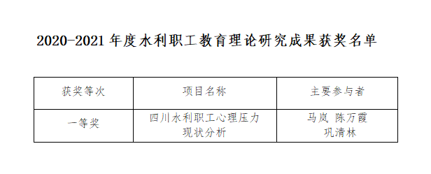 10月26日,中國(guó)水利教育協(xié)會(huì)在官網(wǎng)發(fā)布了第二屆水利職工創(chuàng)新成果評(píng)選結(jié)果和2020-2021年度全國(guó)水利職工教育理論研究成果評(píng)選結(jié)果的公告,集團(tuán)多名職工在評(píng)選中獲獎(jiǎng)。