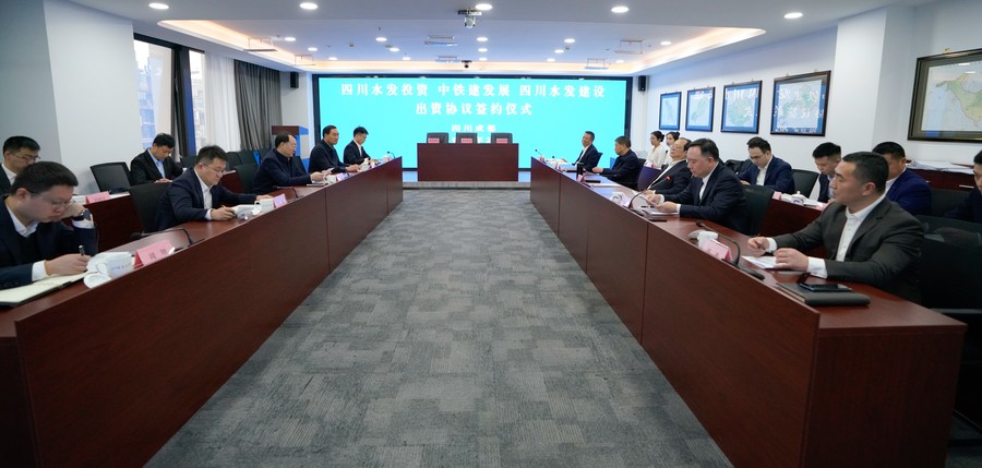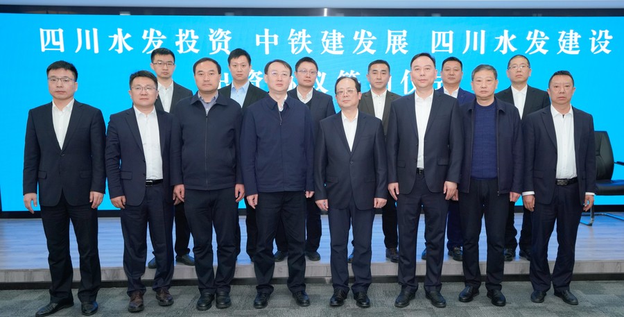 四川水發(fā)投資有限公司黨委副書記、總經(jīng)理郎波,四川水發(fā)建設(shè)有限公司副總經(jīng)理李銀剛,中鐵建發(fā)展集團(tuán)公司副總經(jīng)理劉小剛共同簽署出資協(xié)議。