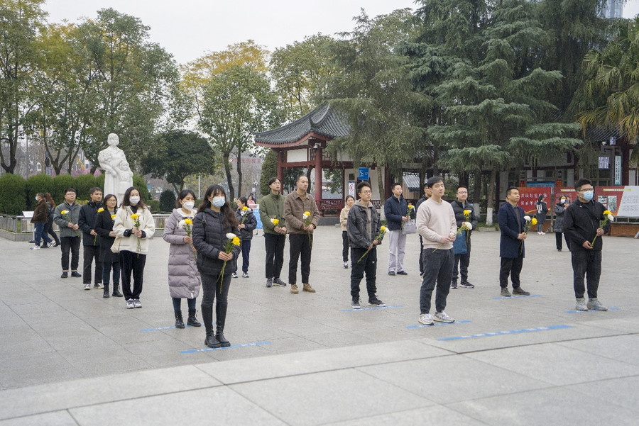 按照活動進程,團員青年們在成都市十二橋烈士墓文化公園深切回顧了“十二橋”慘案歷史,對革命烈士進行了獻花緬懷,在烈士墓廣場重溫入團誓詞,掀起了一腔熱血。