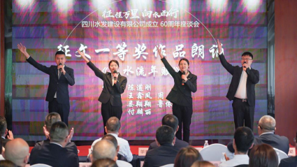 會上,發(fā)布了建設(shè)公司60周年大事記《征程》、畫冊《向水而行》,并對建設(shè)公司企業(yè)文化品牌進行釋義,播放企業(yè)宣傳片《水利鐵軍 匠筑不凡》,觀看了舞蹈《筑夢》視頻。同時,為建設(shè)公司成立 60 周年主題征文和書畫攝影比賽活動優(yōu)秀組織獎獲獎單位及一等獎獲得者頒發(fā)證書,并對詩歌類一等獎?wù)魑淖髌愤M行了朗誦。