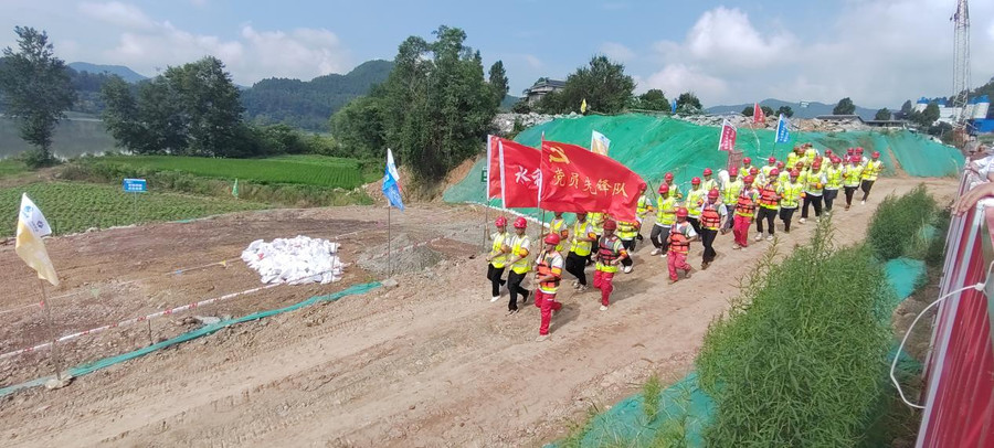 本次演練實景模擬了嘉陵江一級支流東河上游因連續(xù)強降雨出現(xiàn)超標準洪水導致該工程跨河的觀音寺渡槽施工區(qū)域出現(xiàn)險情,重點演練了預警預報、人員設備撤離、醫(yī)療應急救護、基坑邊坡垮塌處置、圍堰管涌處置、火災救援等科目,檢驗了應對突發(fā)事件的預警、響應、保障及救援能力,體現(xiàn)了圍繞實戰(zhàn)、突出重點、注重實效的總要求。
