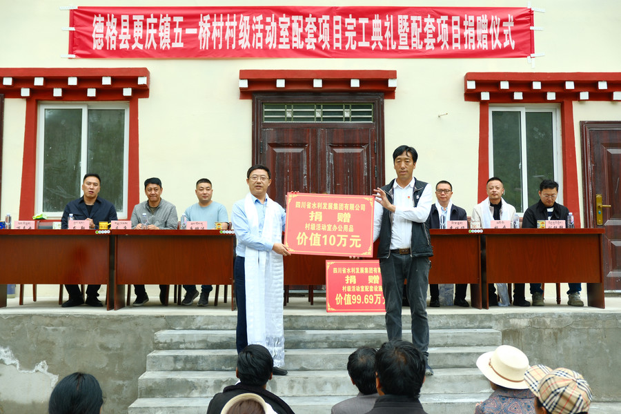 在儀式現(xiàn)場(chǎng),向仕春向五一橋村村民轉(zhuǎn)達(dá)了集團(tuán)黨委書記、董事長(zhǎng)鐘杰對(duì)大家的牽掛,并表示集團(tuán)將認(rèn)真落實(shí)水利廳黨組的要求,積極履行省屬國(guó)有企業(yè)的政治責(zé)任和社會(huì)責(zé)任,按照建設(shè)鄉(xiāng)村振興示范村的標(biāo)準(zhǔn)傾力幫扶五一橋村。希望建設(shè)公司派駐五一橋村幫扶干部萬(wàn)喜云要盡快適應(yīng)新環(huán)境,熟悉掌握任務(wù)要求,為幫扶工作扎實(shí)有效推進(jìn)夯實(shí)基礎(chǔ)。德格縣更慶鎮(zhèn)黨委書記友康表示,省水發(fā)集團(tuán)傾情幫扶民族地區(qū),充分彰顯了省屬國(guó)企的社會(huì)責(zé)任擔(dān)當(dāng)。