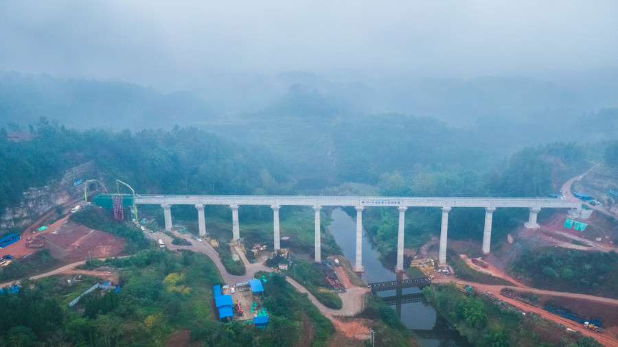 邱場分干渠自貢段全長28.9公里,目前,木橋溝渡槽13個墩柱、12跨槽身全部建設完工,引水隧洞也基本完成開挖,新龍灣渡槽已全面建成。該標段累計完成投資8.5億余元,投資和形象進度快于預期。
