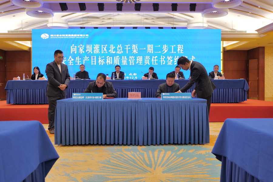 會議學習貫徹了習近平總書記關于安全生產(chǎn)重要論述和質量強國建設的重要指示精神,傳達了全國安全生產(chǎn)電視電話會議、全省安全生產(chǎn)工作會議精神以及省委省政府和水利部、水利廳關于安全質量管理的各項決策部署,見證了向家壩公司與向家壩灌區(qū)一期二步工程部分參建單位簽訂安全生產(chǎn)目標責任書和質量管理責任書,認真分析水發(fā)集團項目建設安全質量管理面臨的形勢,通報了歷次各級監(jiān)督檢查發(fā)現(xiàn)的主要安全質量問題,安排部署當前和今后一個時期項目建設安全質量管理工作。水利廳建設處、審監(jiān)處負責同志全面系統(tǒng)分析了當前水利建設面臨的新形勢、新問題、新挑戰(zhàn),要求水發(fā)集團要始終堅持問題導向,全面壓緊壓實責任,以大質量管理為重要抓手,進一步強化安全生產(chǎn)、建設質量等實行全過程、全鏈條管理,從嚴監(jiān)管,逗硬獎懲,為四川水利高質量發(fā)展奠定堅實基礎。