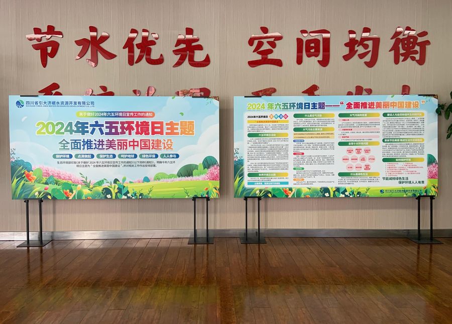 在召開專題會議的同時,引大濟岷公司還制作了宣傳展版、張貼宣傳畫報,利用電子屏滾動播放生態(tài)環(huán)境宣傳標語。