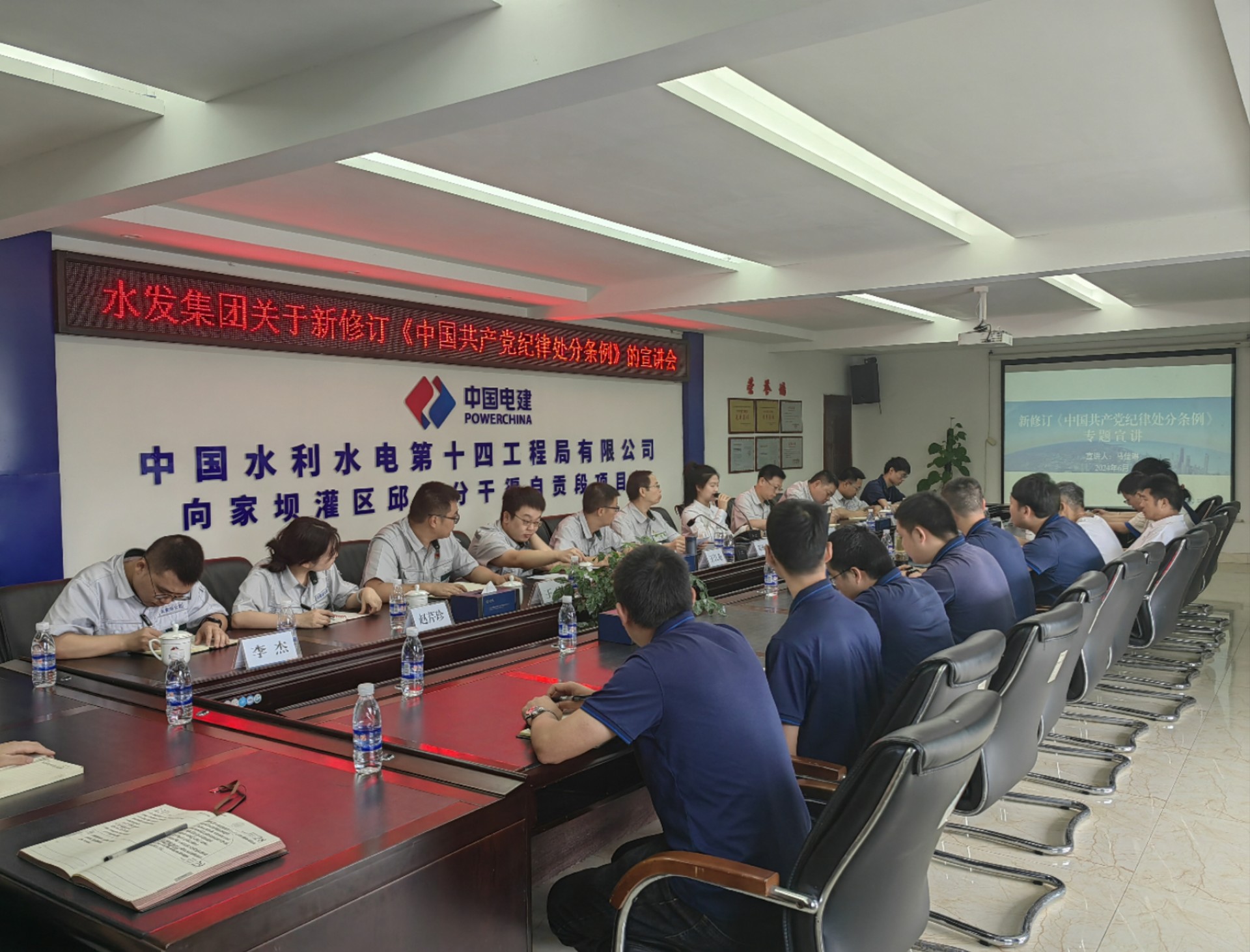 為深入學(xué)習(xí)貫徹新修訂的《中國(guó)共產(chǎn)黨紀(jì)律處分條例》(以下簡(jiǎn)稱(chēng)《條例》),推動(dòng)黨紀(jì)學(xué)習(xí)教育走深走實(shí),增強(qiáng)紀(jì)律規(guī)矩意識(shí),筑牢廉潔思想防線,6月5日,集團(tuán)紀(jì)檢監(jiān)察部副部長(zhǎng)羅超帶領(lǐng)集團(tuán)黨紀(jì)宣講團(tuán)成員赴向家壩灌區(qū)公司的向家壩灌區(qū)一期一步北一段中鐵十二局項(xiàng)目部、邱場(chǎng)分干渠自貢段水電十四局項(xiàng)目部和一期二步V標(biāo)水發(fā)建設(shè)3個(gè)項(xiàng)目部為參建單位各黨支部宣講新修訂的《條例》。