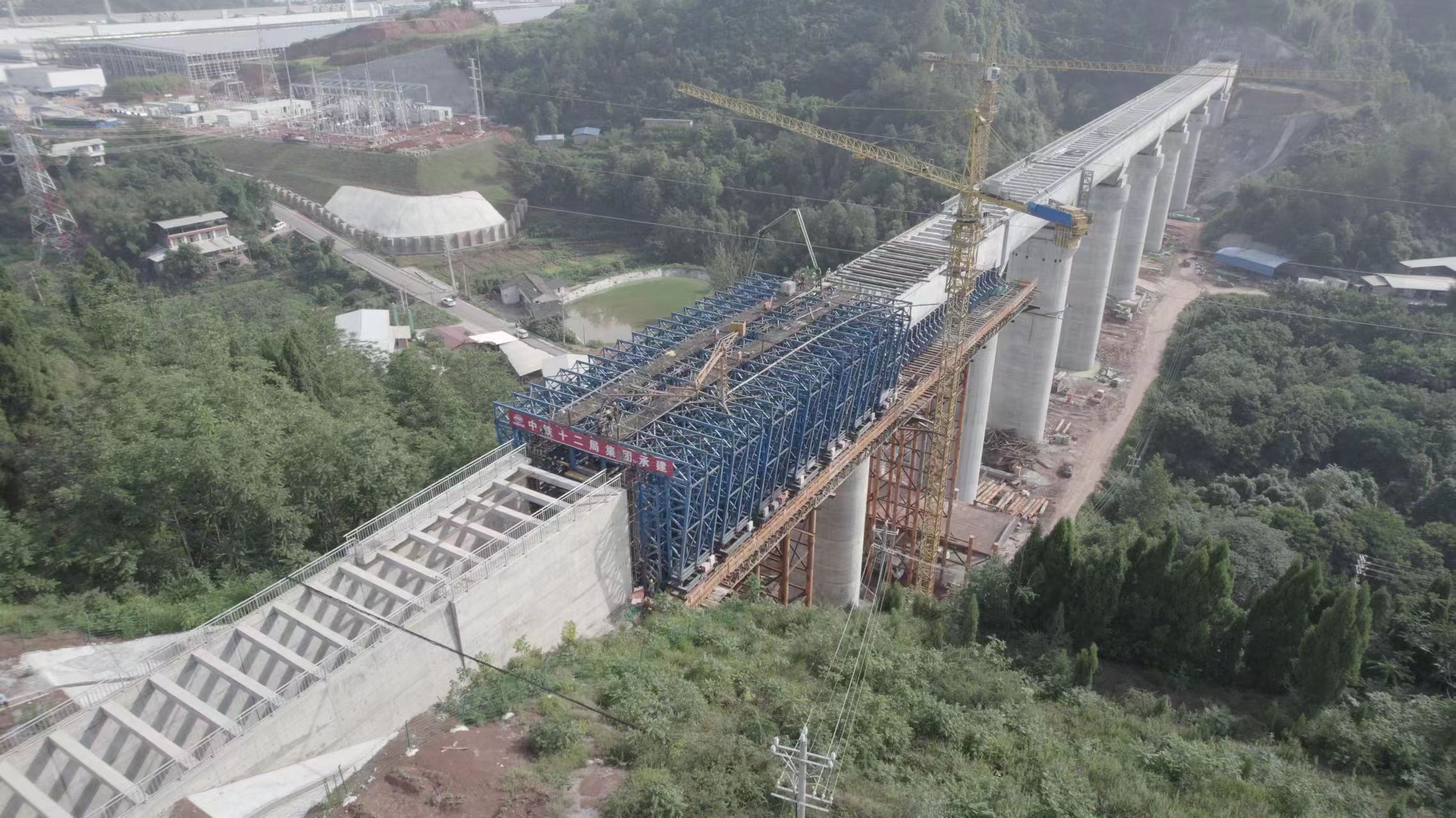 在施工過程中,銀匠溝渡槽面臨了諸多挑戰(zhàn),如槽身結(jié)構(gòu)斷面大、架空高度高、自重荷載大、單孔跨度大等,水發(fā)集團向家壩公司及其參建團隊迎難而上,充分發(fā)揮主觀能動性,通過1:1原型仿真試驗優(yōu)化設(shè)計方案,改進施工工藝并采用“托-膺架”的組合支撐體系以及研發(fā)自行模架工裝,不僅成功克服了施工難題,還極大降低了施工風險,提高了施工效率。
