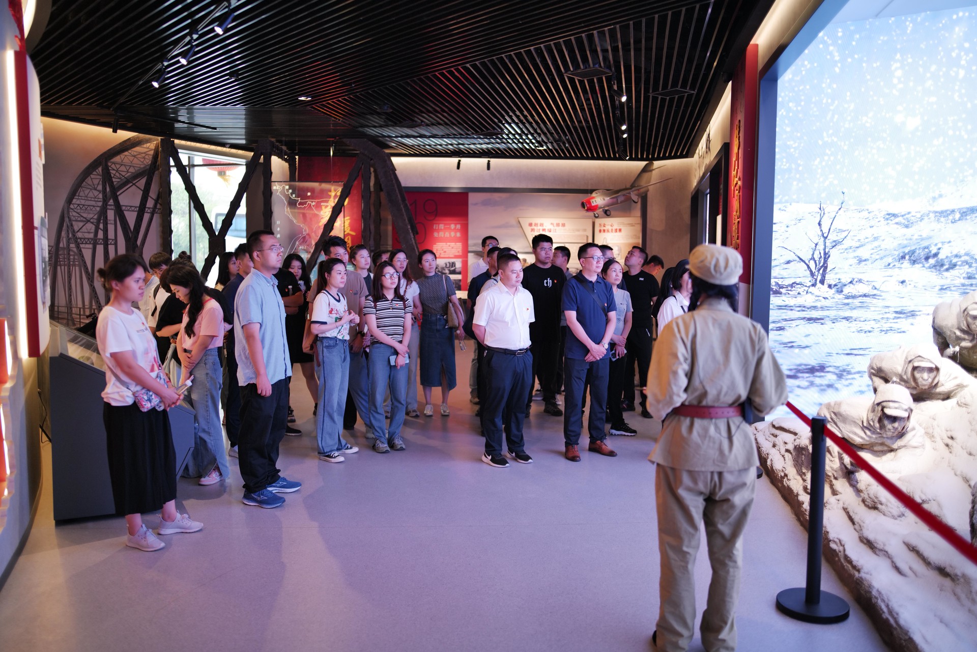 在活動(dòng)現(xiàn)場(chǎng),“抗美援朝保家園、鮮紅戰(zhàn)旗美如畫、勇士輝煌化金星、繼往開來譜新篇”四個(gè)展覽單元全面展示了一幅中國(guó)人民志愿軍奪取抗美援朝戰(zhàn)爭(zhēng)偉大勝利的歷史長(zhǎng)卷。黨員們沿著紅色文化長(zhǎng)廊前行,認(rèn)真傾聽那些驚心動(dòng)魄的戰(zhàn)斗故事,觀看全息投影和實(shí)景搭建的戰(zhàn)斗現(xiàn)場(chǎng),沿著英雄們的足跡,追尋那段不朽的歷史記憶,身臨其境地感受了戰(zhàn)爭(zhēng)的激烈與殘酷,深入感悟英雄的豪邁愛國(guó)情懷以及“忠孝勤儉、敬業(yè)守法、誠(chéng)實(shí)友愛、葆真求善”的家風(fēng)內(nèi)涵。