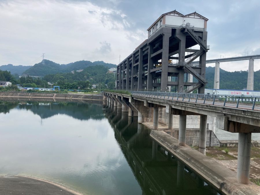 山水輝映下的閘壩