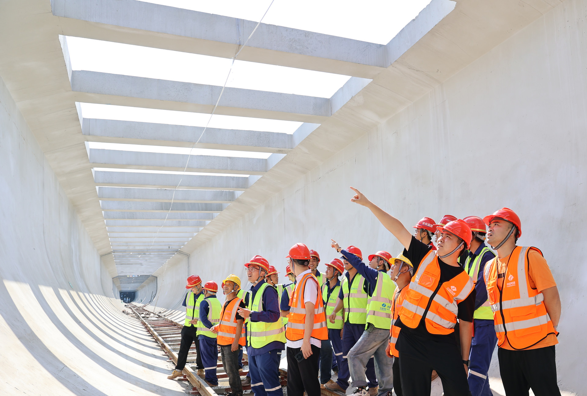 觀摩人員先后來到葛麻山隧洞襯砌混凝土施工樣板段、唐家溝渡槽第三跨槽身樣板段。現(xiàn)場(chǎng)負(fù)責(zé)人介紹,葛麻山隧洞總長(zhǎng)1477.6米,隧洞為內(nèi)徑6.3米的圓形斷面。在施工過程中,項(xiàng)目部嚴(yán)格按照施工方案和操作規(guī)范落實(shí)標(biāo)準(zhǔn)化、規(guī)范化工序,各項(xiàng)過程管控做到“精、準(zhǔn)、嚴(yán)、細(xì)”,有效確保了襯砌工程的整體質(zhì)量。項(xiàng)目質(zhì)量負(fù)責(zé)人表示,針對(duì)唐家溝渡槽槽身施工的技術(shù)難題,項(xiàng)目部充分利用BIM建模與三維動(dòng)畫制作等先進(jìn)技術(shù)手段,對(duì)U型槽身特點(diǎn)、難點(diǎn)進(jìn)行深入剖析與精準(zhǔn)模擬研究,提前識(shí)別并規(guī)避施工中的技術(shù)質(zhì)量風(fēng)險(xiǎn)。