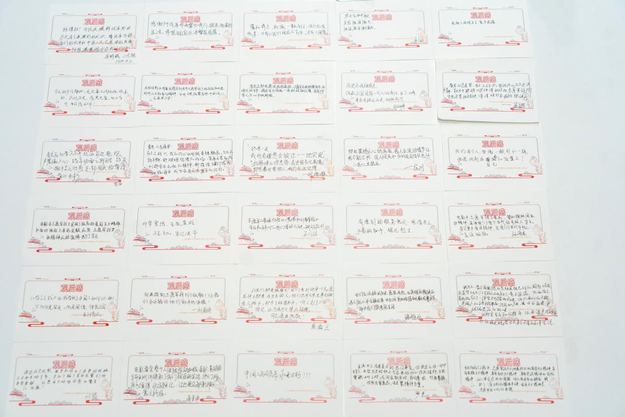 影片結(jié)束后,青年職工們的內(nèi)心久久不能平靜,影片中那些戰(zhàn)士們的鏗鏘話語仍然在每一個職工心間激蕩,大家通過觀后感卡片紛紛表達了感受,對那些為國家和民族獻出生命的英雄們表達了自己崇高的敬意。