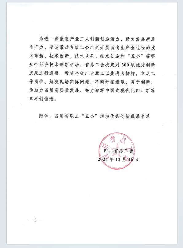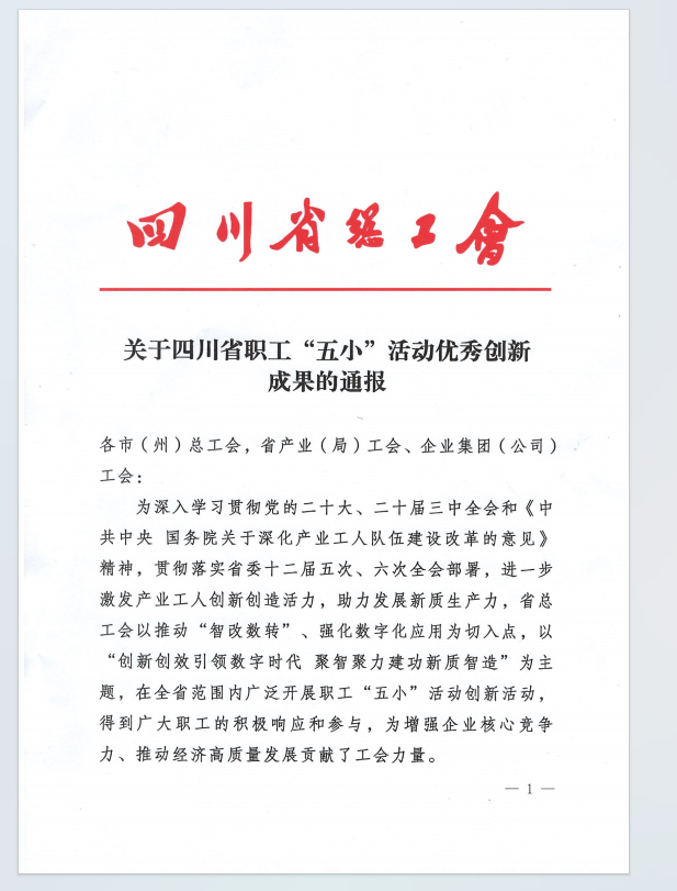 喜報!集團設(shè)計公司項目在四川省職工“五小”活動中獲優(yōu)秀創(chuàng)新成果