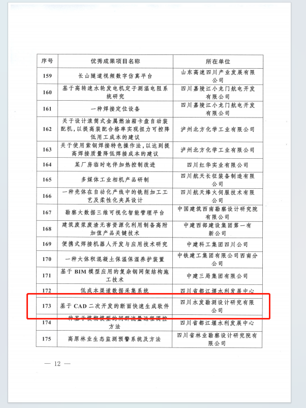 近日,集團設(shè)計公司測繪分院信息組申報的項目“基于CAD二次開發(fā)的斷面快速生成軟件”取得四川省職工“五小”活動優(yōu)秀創(chuàng)新成果。