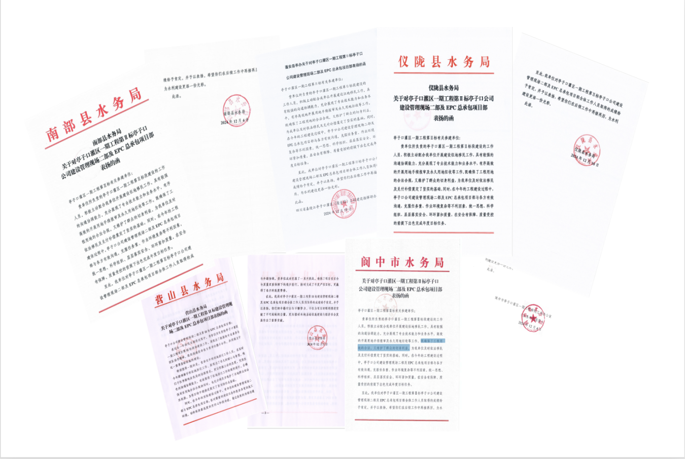 近日,亭子口灌區(qū)一期工程EPC第Ⅱ標段項目部收到閬中市、儀隴縣、蓬安縣、南部縣、營山縣等五縣(市)水務(wù)局的聯(lián)合表揚。