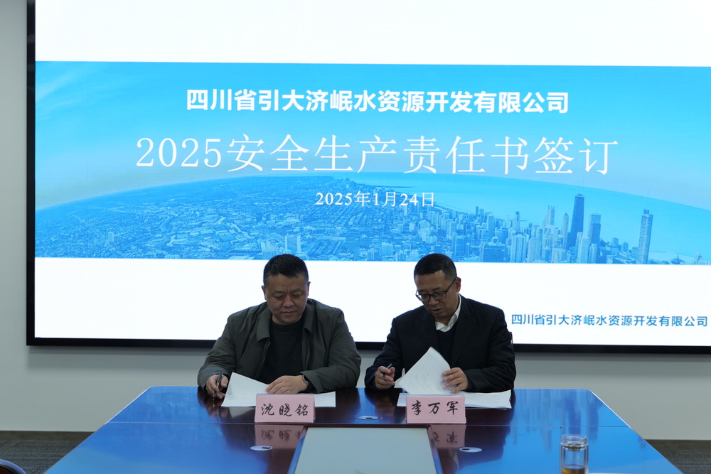 三是堅決把思想統(tǒng)一起來、形成合力,以鐵的決心鐵的毅力推進引大濟岷工程建設。全體干部職工要樹立強烈的事業(yè)心、使命感,以“久久為功”的意志和決心,鼓足干勁、鍥而不舍,在引大濟岷工程建設和引大濟岷公司發(fā)展征程中奮勇爭先,加快推進引大濟岷工程開工建設,奮力譜寫四川骨干水網(wǎng)新篇章。 會議強調要高度重視節(jié)日期間安全生產(chǎn)工作,全面開展安全大檢查、全面排查問題隱患,保障全體員工渡過祥和歡樂的新春佳節(jié),會議上引大濟岷公司還開展2025年度安全責任書簽訂工作。